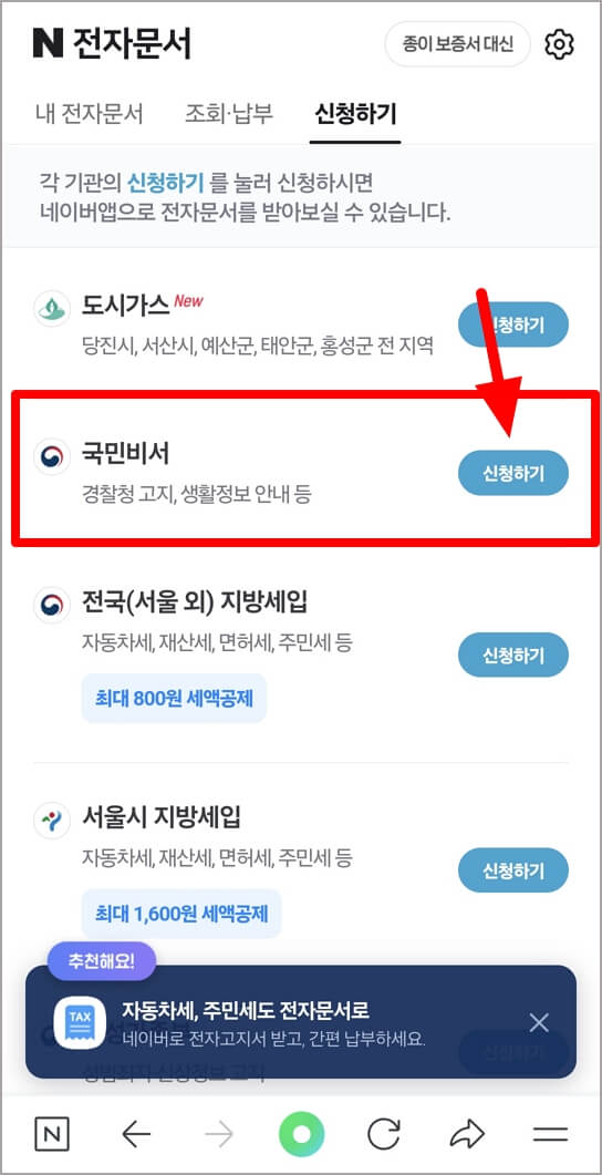 - 신청하기 중 '국민비서' 신청하기 선택